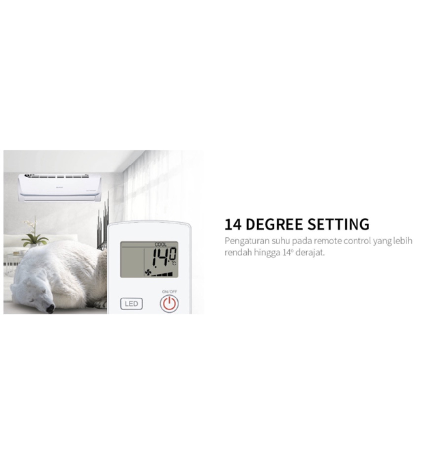 Pengaturan Suhu 14 Celcius: Fitur pengaturan suhu hingga 14 Celcius memungkinkan Anda untuk merasakan pendinginan ekstra dalam cuaca panas yang ekstrem.